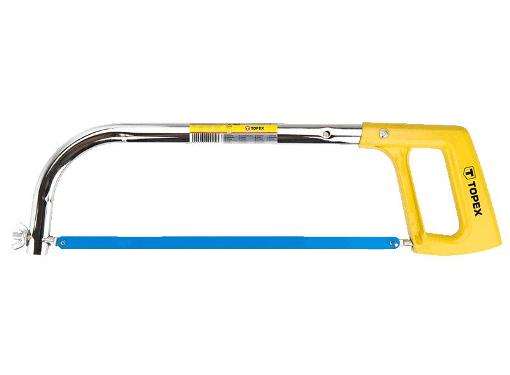 - Ножовка для металла имеет узкую форму, и тонкие зубья. Полотно закреплено к раме в виде полумесяца с обеих сторон. Показатель натяжения полотна регулируется специальным винтом. На раме имеется прорезиненная ручка, чтобы было удобно держать инструмент.