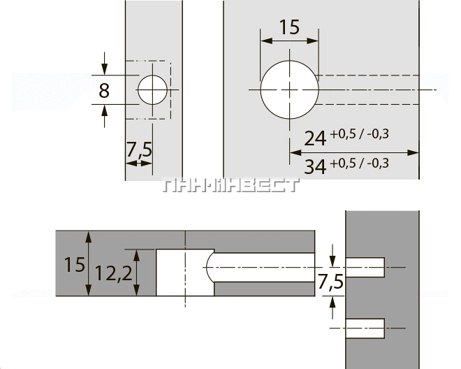 Π¨Π°Π³ β2 β Π΄Π΅Π»Π°Π΅ΠΌ ΠΎΡΠ½ΠΎΠ²Π°Π½ΠΈΠ΅ ΠΈ ΡΠ°Π·ΠΌΠ΅ΡΠΊΡ. ΠΡΡΠ΅ΠΆΡΡΠ΅ Π±ΠΎΠ»Π³Π°ΡΠΊΠΎΠΉ ΠΎΡ Π±ΡΡΡΠΊΠ° ΡΠ°ΡΡΡ Π½Π΅ΠΎΠ±Ρ ΠΎΠ΄ΠΈΠΌΠΎΠΉ Π΄Π»ΠΈΠ½Ρ. ΠΠ°ΡΠ»ΠΈΡΡΠΉΡΠ΅ Π½Π°ΠΏΠΈΠ»ΡΠ½ΠΈΠΊΠΎΠΌ Π²ΠΎΠ·ΠΌΠΎΠΆΠ½ΡΠ΅ Π·Π°ΡΡΠ΅Π½ΡΡ. Π Π°Π·ΠΌΠ΅ΡΡΡΠ΅ ΠΌΠ΅ΡΡΠ° Π΄Π»Ρ Π±ΡΠ΄ΡΡΠΈΡ ΠΎΡΠ²Π΅ΡΡΡΠΈΠΉ. ΠΠ±ΡΠ΅ΠΏΡΠΈΠ½ΡΡΡΠΌΠΈ ΡΠ°Π·ΠΌΠ΅ΡΠ°ΠΌΠΈ ΡΠ²Π»ΡΡΡΡΡ ΡΠ°ΡΡΡΠΎΡΠ½ΠΈΠ΅ ΠΌΠ΅ΠΆΠ΄Ρ ΠΏΠ°Π·Π°ΠΌΠΈ 32 ΠΌΠΌ, ΡΠ°ΡΡΡΠΎΡΠ½ΠΈΠ΅ ΠΎΡ ΡΠ΅Π½ΡΡΠΎΠ² ΠΏΡΠΎΡΠ΅Π·Π΅ΠΉ Π΄ΠΎ Π±ΠΎΠΊΠΎΠ²ΠΎΠΉ Π³ΡΠ°Π½ΠΈ β 8 ΠΌΠΌ. Π§ΡΠΎΠ±Ρ ΡΠ΄Π΅Π»Π°ΡΡ ΡΠ°Π·ΠΌΠ΅ΡΠΊΡ ΡΠΎΡΠ½ΠΎΠΉ, Π²ΠΎΡΠΏΠΎΠ»ΡΠ·ΡΠΉΡΠ΅ΡΡ ΡΡΠ°Π½Π³Π΅Π½ΡΠΈΡΠΊΡΠ»Π΅ΠΌ. Π£Π΄ΠΎΠ±Π½ΠΎ, Π΅ΡΠ»ΠΈ ΠΏΠΎΠΌΠ΅ΡΠ°ΡΡ ΡΠ΅Π½ΡΡΡ Π±ΡΠ΄ΡΡΠΈΡ ΠΏΠ°Π·ΠΎΠ² Π²Ρ Π±ΡΠ΄Π΅ΡΠ΅, ΠΏΡΠΈΠΌΠ΅Π½ΠΈΠ² ΡΠΈΠ»ΠΎ ΠΈΠ»ΠΈ ΠΈΠ³Π»Ρ.