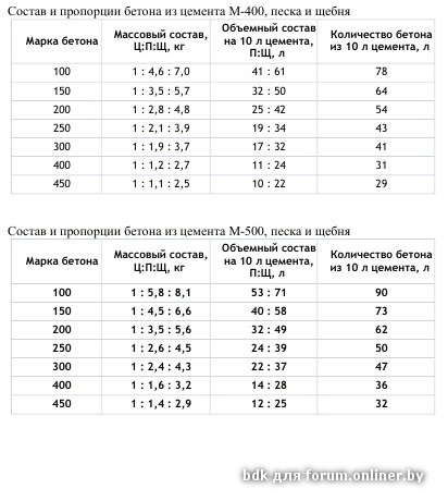 Перед тем, как замесить бетон, всегда интересует, какие же пропорции нужны для той или иной марки.