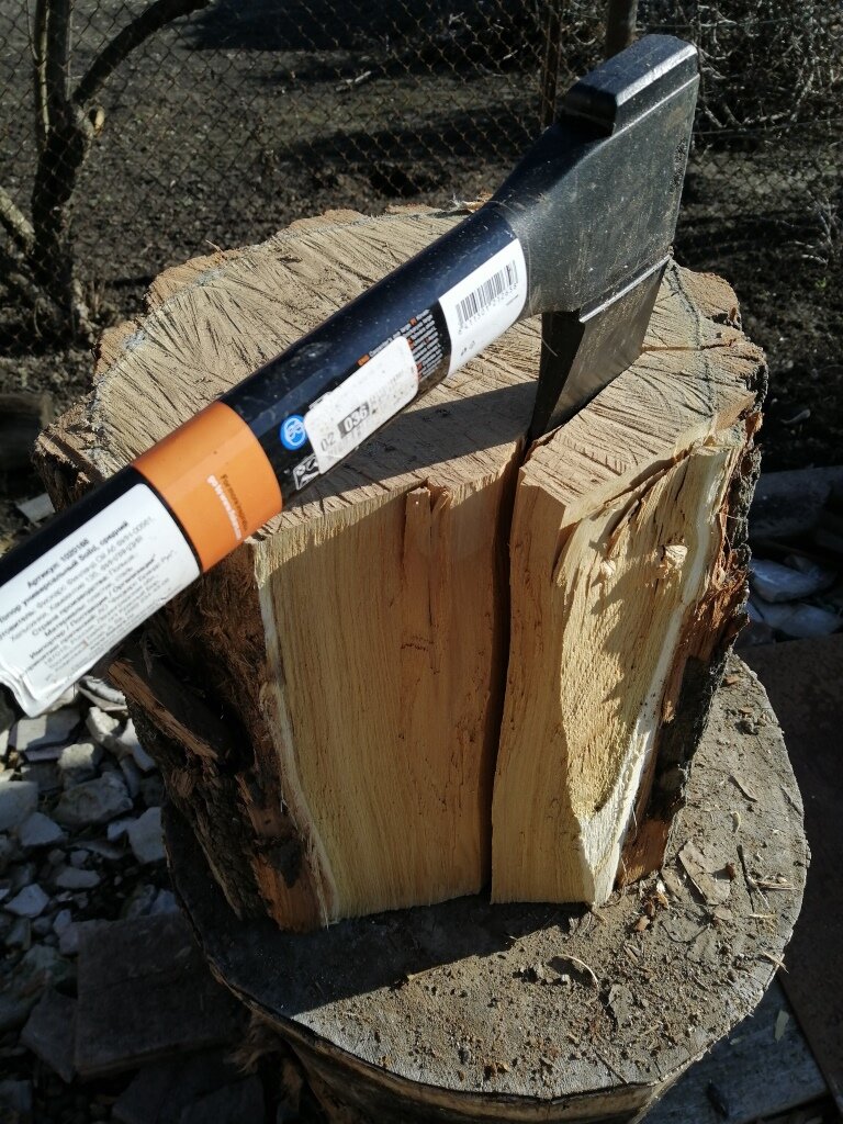 Многими опытными рубщиками подтверждается, что такой инструмент часто не только не раскалывает чурку, но прочно и надолго застревает в ней.