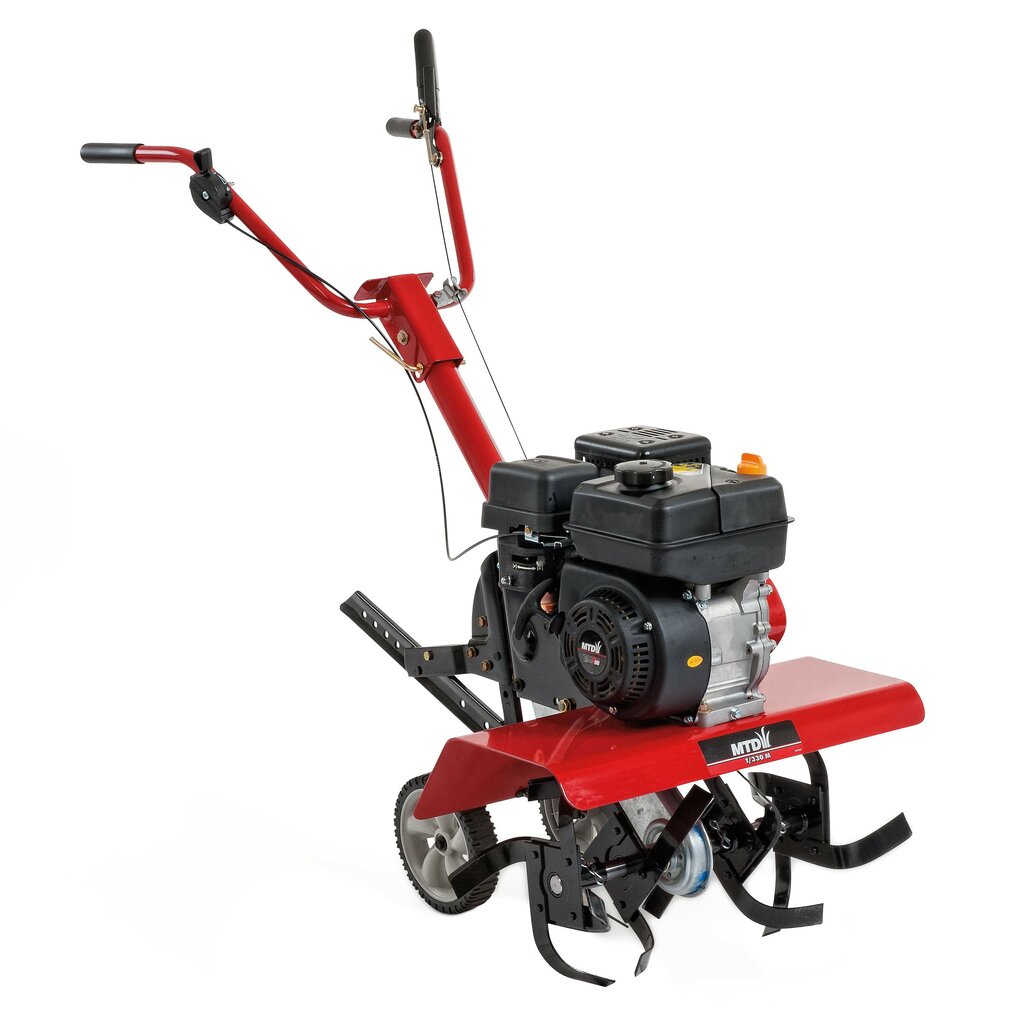 Допустим, вы ищите что-нибудь помощнее 600 Вт. Та же Германия производит культиваторы MTD T 30E 21A. Развивает силу в 1,9 л.с. Правда по сравнению с предыдущим вариантом, у него проблемы с захватом глубины и ширины грунта — рыхлит ширину до 30 см, уходя на 15 см вглубь. Весит 13 кг. Имеет червячный редуктор.