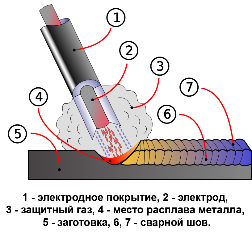 Оборудование для дуговой сварки защищенным металлом обычно работает на основе тепла, выделяемого электрической дугой. Сварка стержнем — другое название этих процессов, которые включают пропускание электрического тока через пространство между металлом и сварочным стержнем (присадочным стержнем).