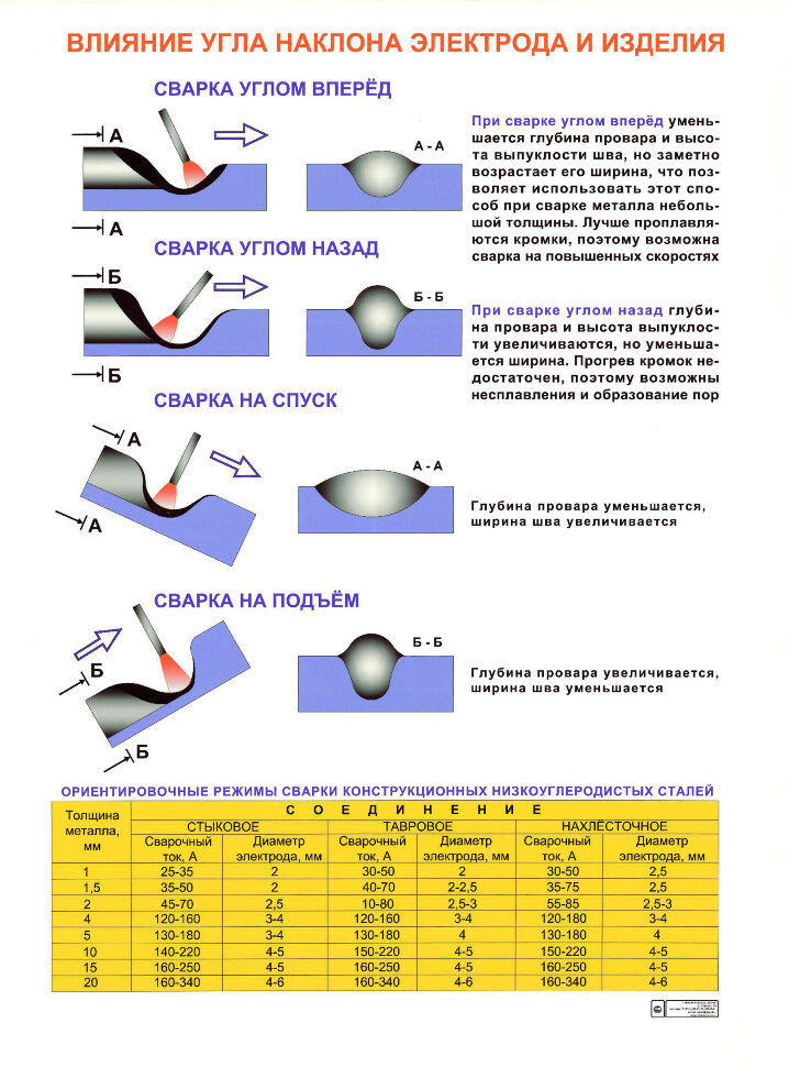Сварка постоянным током обратной полярности во всех пространственных положениях металла большой толщины | Основные | Б |