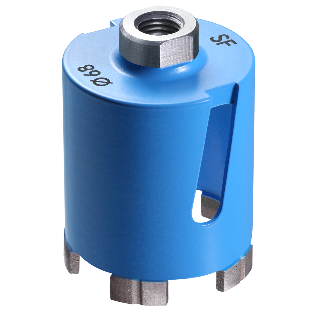 Особенностью первых является наличие специальных отверстий в конструкции для охлаждения оснастки и предотвращения ее быстрого износа. Используются с ручным инструментом для работы с бетоном, гранитом, кирпичом. В процессе сверления образуется большое количество шлака, пыли и других отходов, поэтому в закрытых помещениях применение такого типа коронок не рекомендуется.