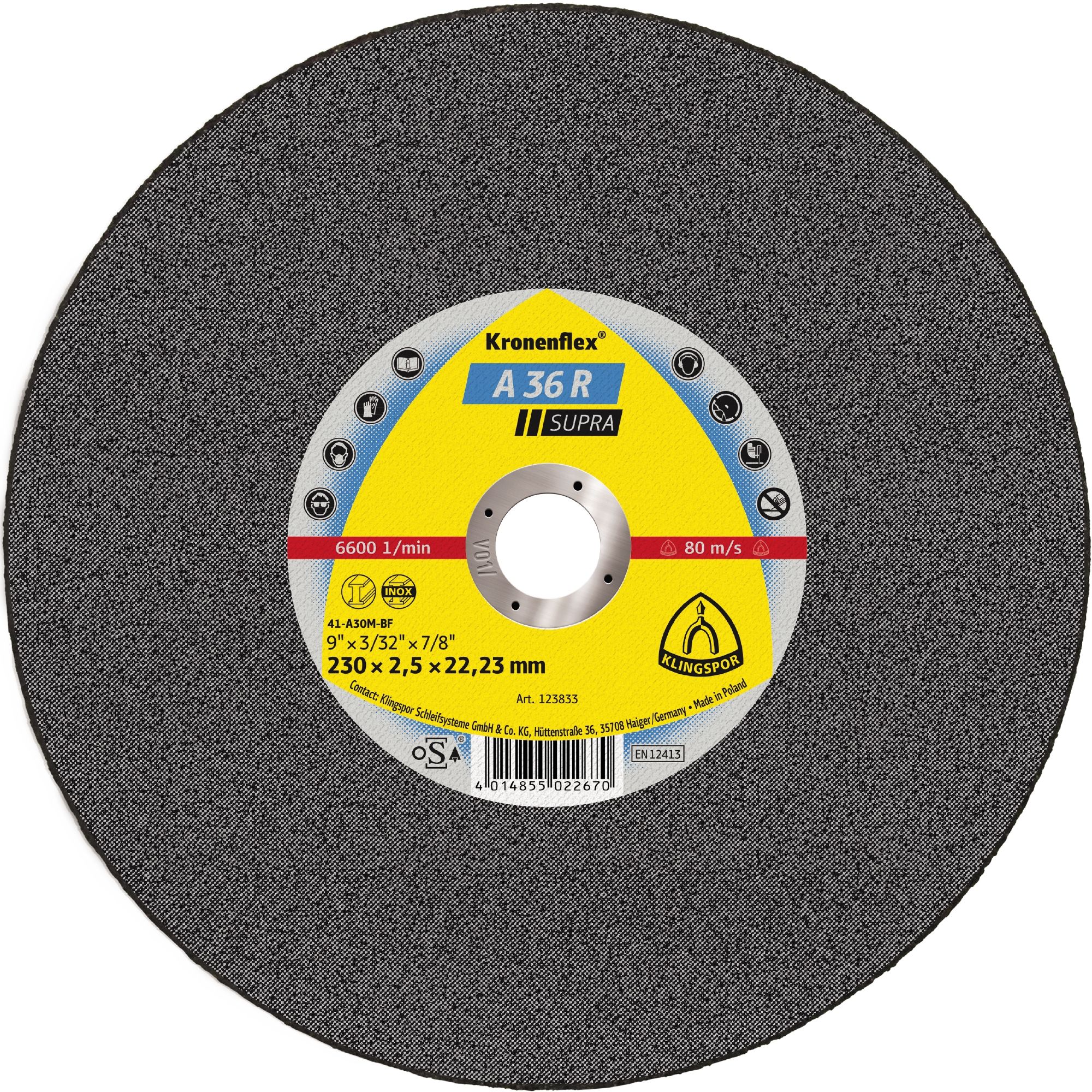 Выбирается в зависимости от материала и сечения разрезаемых заготовок. Чем меньше (тоньше) сечение заготовки, тем тоньше должен быть отрезной круг.