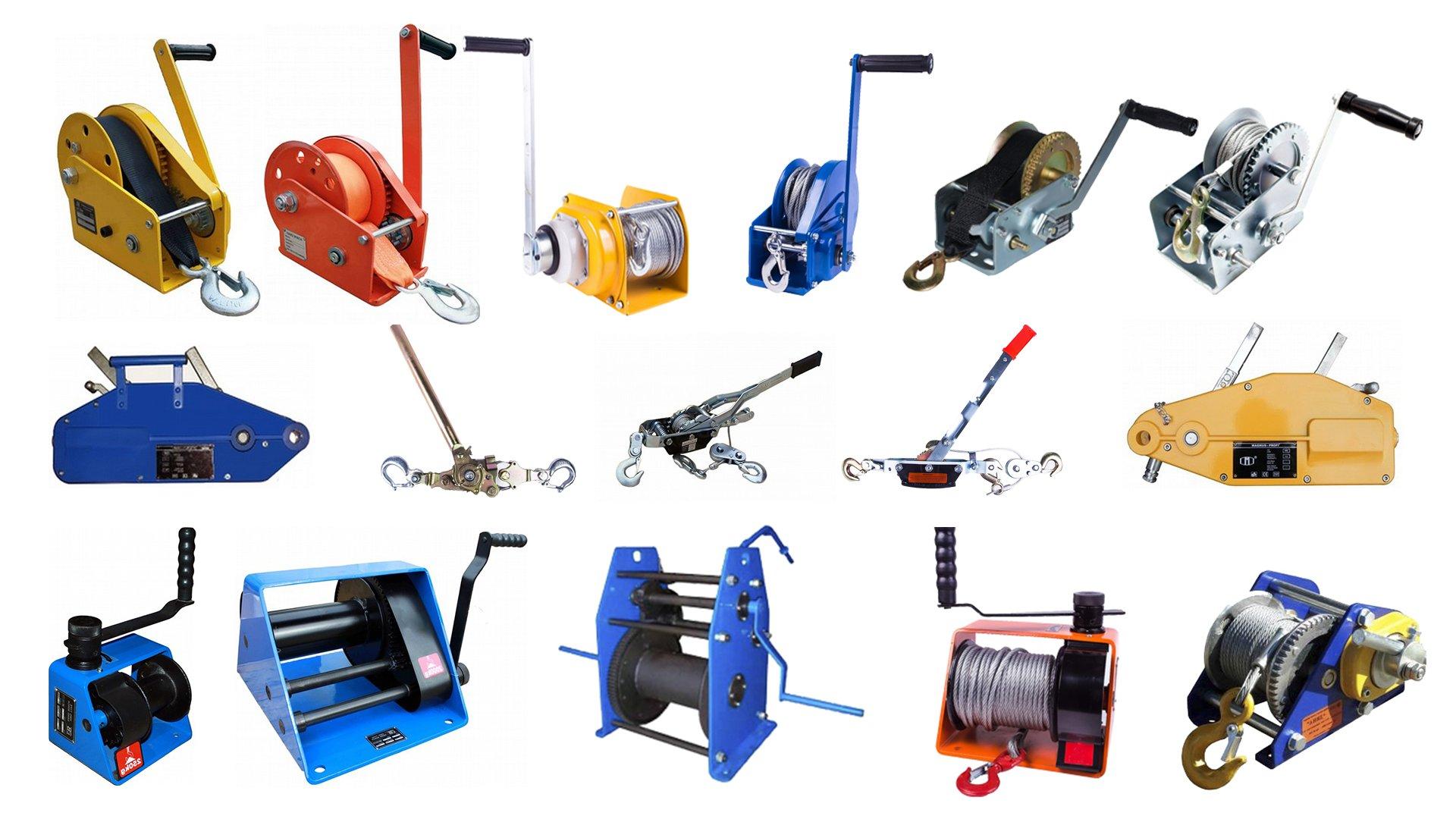 Популярным видом ручной лебедки является монтажная лебедка. Она привлекательна тем, что при ее эксплуатации можно использовать трос неограниченной длины. Работа такой лебедки основана не на намотке троса на барабан, а на протягивании его через механизм лебедки. Не менее популярна, благодаря компактности и низким, по сравнению с грузоподъемным оборудованием, использующим зубчатую передачу, оборотным усилием, и червячная лебедка. Для привода барабана в ней используется червячная передача, «архимедов винт». Недостатком такой лебедки является повышенное трение в паре зубчатое колесо –«червяк», которое приводит к раннему износу всего механизма и использованию большего количества смазочных материалов.