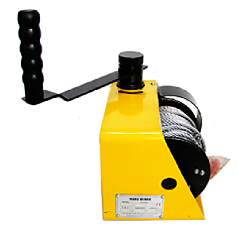 Ручная лебедка состоит из канатного барабана, редуктора подъема, корпуса (рамы), несущего узлы лебедки, стального каната и рычага.