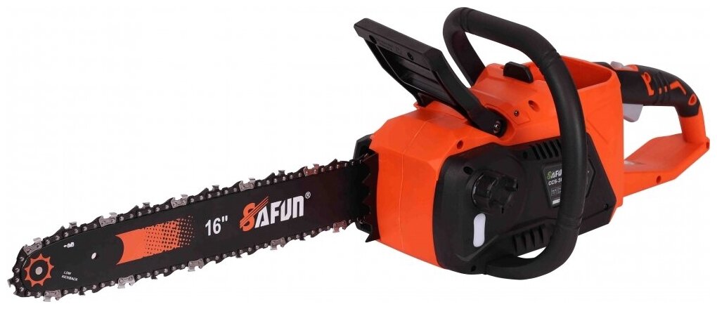 На этой электропиле установлен надежный бесщеточный двигатель, работающий от литий-ионного аккумулятора с номинальным напряжением 36 вольт и емкостью 3,3 А*ч.