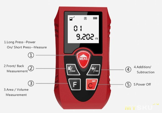 Размер: 105*82*43 мм- Точность измерения: 1 м
