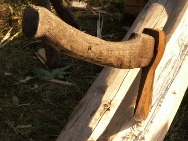 - Определяется заготовка, из которой будет сделано топорище. Диаметр ее должен быть не менее 13 см, а длина на 20 см длиннее окончательного варианта;