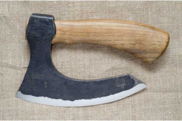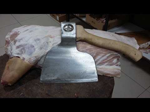 Затачивается оно под острым углом, чтобы можно было легко рубить мясо этим топором.