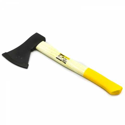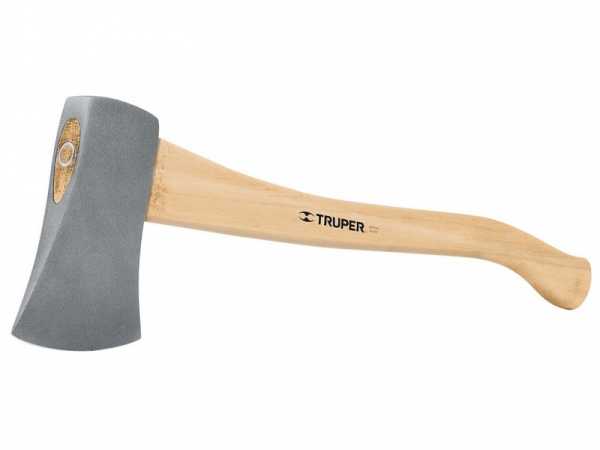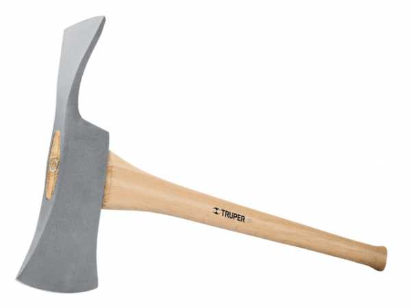 Плотницкий топор обладает скругленным лезвием и длиной топорища около 40 см.