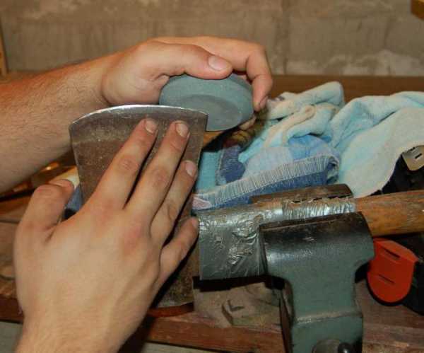 - Топор очищается от ржавчины при помощи металлической мочалки или специального чистящего средства.