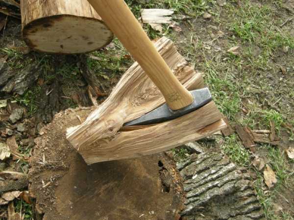 Топор для колки легко расколет колоду или бревно.