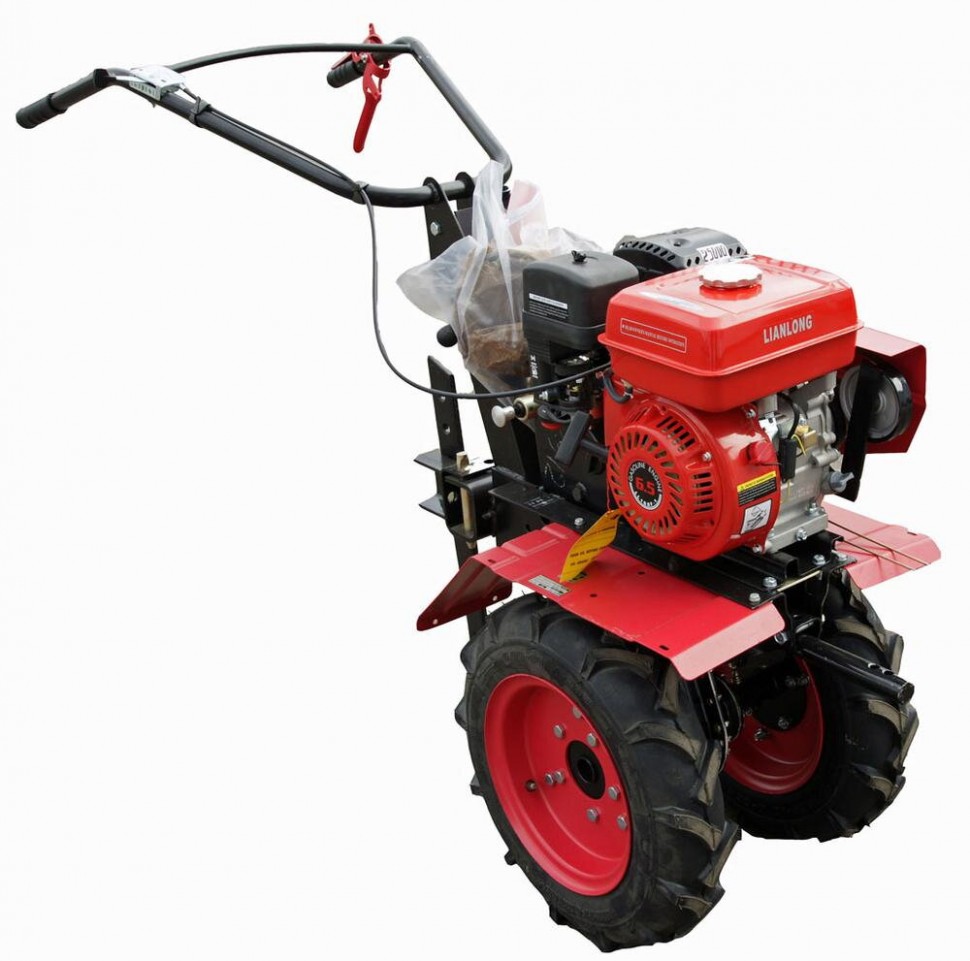 Мотоблок с бензиновым четырехтактным двигателем с мощностью 15 л.с. или 11,03 кВт. Сельхоз техника способна выполнять широкий перечень задач, обрабатывает все виды почвы, транспортирует тяжелые грузы. Масло наполняемый воздушный фильтр для лучшей очистки поступающего воздуха, продлевает срок службы двигателя. Шестеренчатый редуктор представлен в чугунном корпусе. Имеет две передние и одну заднюю скорости. Может использоваться, как газонокосилка и снегоуборщик. Прекрасно подходит для работы в фермерских хозяйствах. Ширина вспашки 1050 мм, глубина 300 мм. Диаметр колес 12 дюймов. Емкость топливного бака 6,5 л, масляного 1,1 л. В горловине бака установлен мелкоячеистый топливный фильтр, который предотвращает попадание загрязнений во время заправки. Большие пневматические колеса для лучшей устойчивости и проходимости на сложных участках.