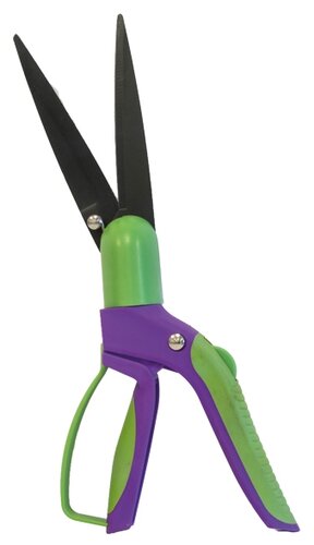 Из газонных ручных ножниц эти самые мощные. Предназначены они преимущественно для подстригания травы, а также подравнивания живой изгороди или деревьев до высоты в 2,5 метра. У них предусмотрена регулировка угла в диапазоне 0–270° между ручками и плоскостью реза, что позволяет использовать их как угловые при стрижке газонов, не наклоняясь, или для обрезки кустарниковых культур просто как длинные рычажные. Однако, работать с ними на газонах не очень удобно, поскольку при этом заняты обе руки.