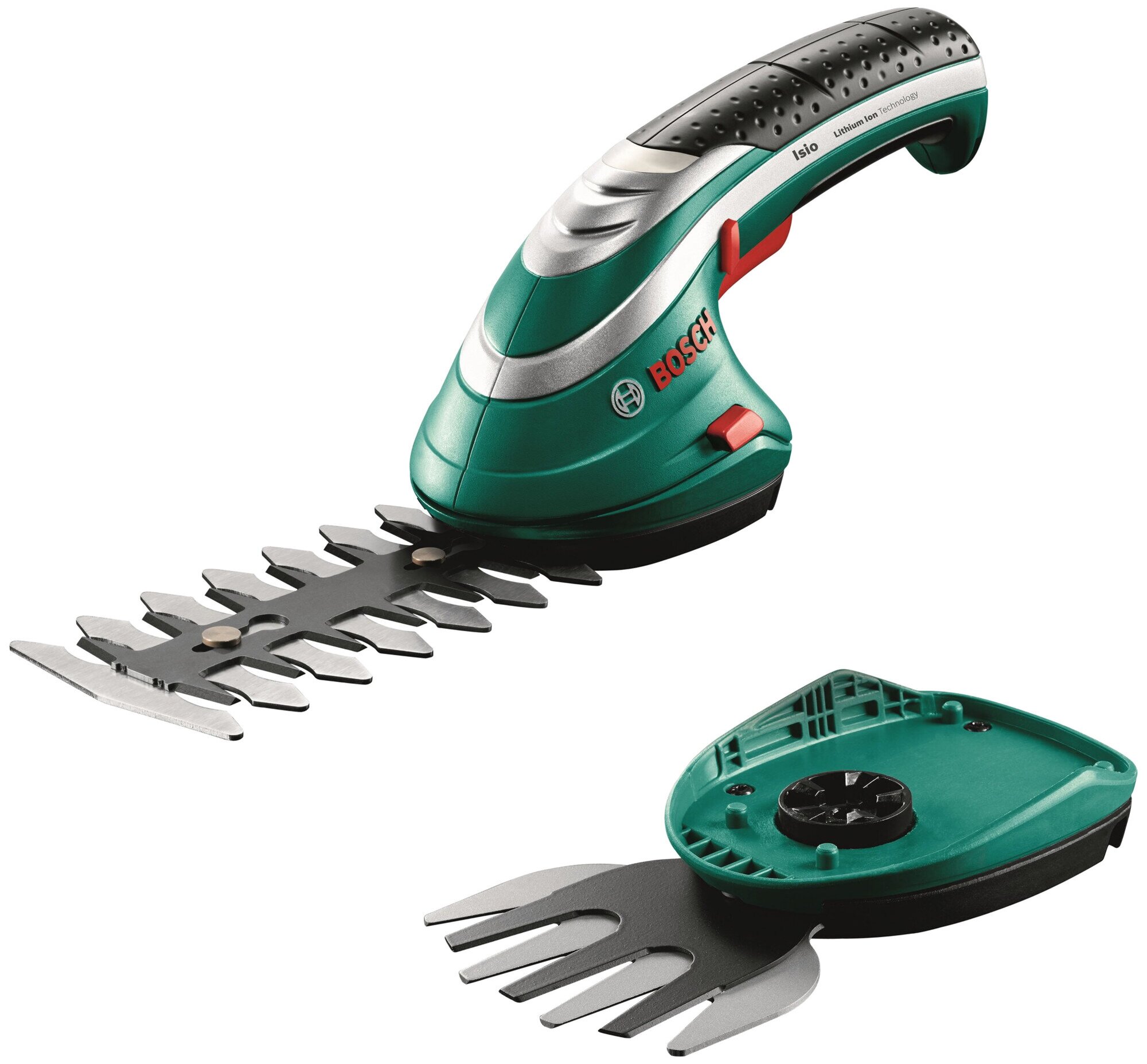 Ножницы для газона – это не газонокосилка, поэтому захват у них небольшой, от 8 до 16 см, не более. Почти ко всем моделям, кроме самых дешёвых, прилагаются дополнительные режущие насадки. С их помощью аккумуляторные ножницы для травы превращаются, например, в компактный кусторез, используемый как основной инструмент в топиарном искусстве. Блок ножей легко меняется без применения каких-либо дополнительных принадлежностей. Иногда в продаже бывают также различные нестандартные насадки.