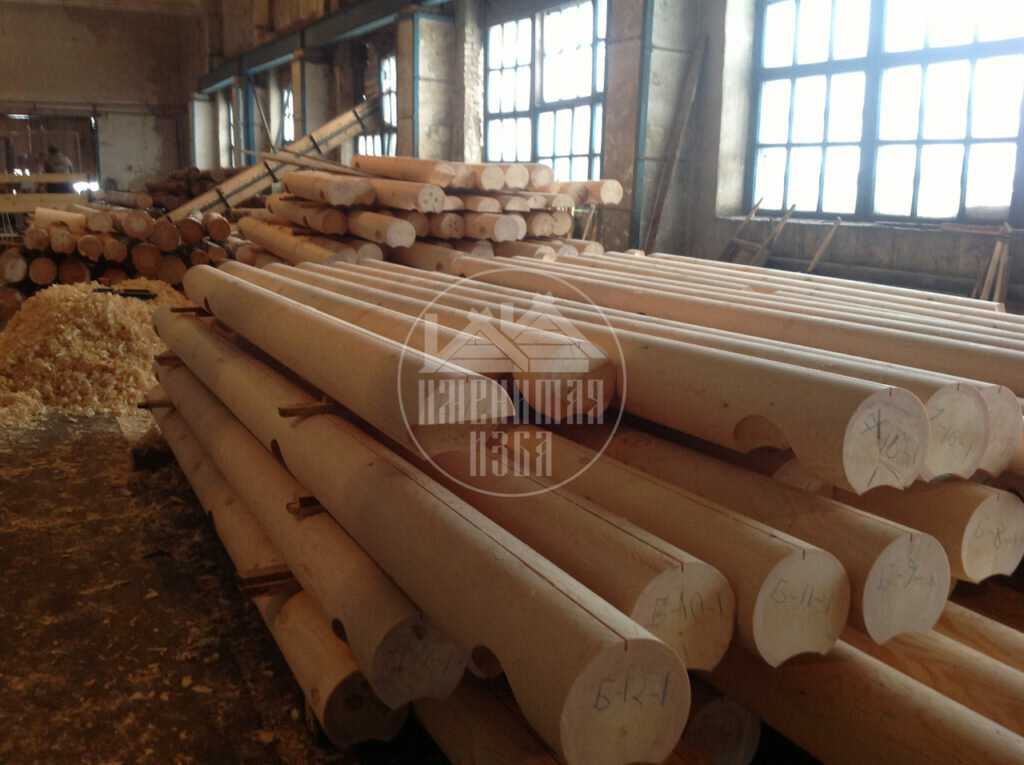 После обработки брёвна имеют однородный древесный светло-бежевый цвет.