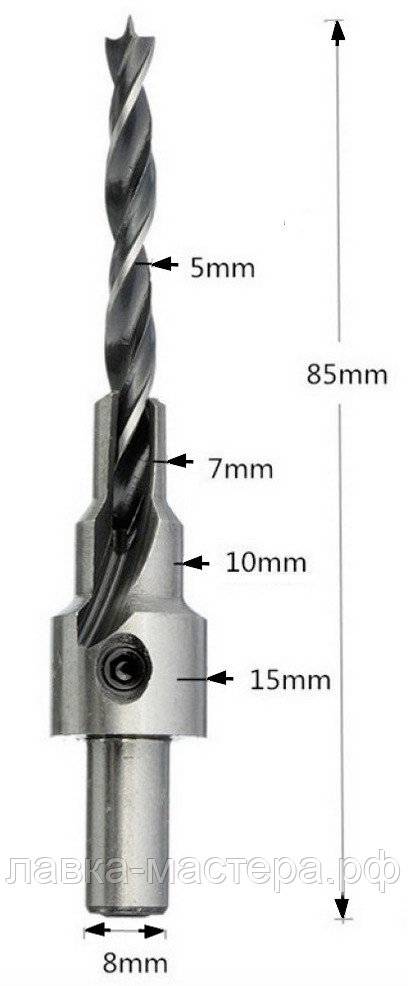 Предназначено для проделывания функциональных отверстий в мебельных заготовках из натуральной древесины. Оно в точности повторяет контуры стандартного конфирмата, чем существенно облегчает процесс сборки и продлевает срок эксплуатации мебели. Элемент создает отверстие не только для тела, но и для шейки винта. Корпус сверла выполнен из прочного, износостойкого металлического сплава. Наконечник легко входит в древесину, не повреждая края отверстия.