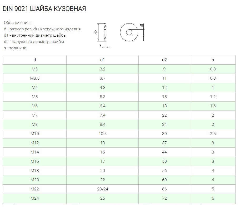 | Диаметр головки, макс. «D2» | 3,8 | 4,7 | 5,6 | 7,5 | 9,2 | 11 | 14,5 | 18 |