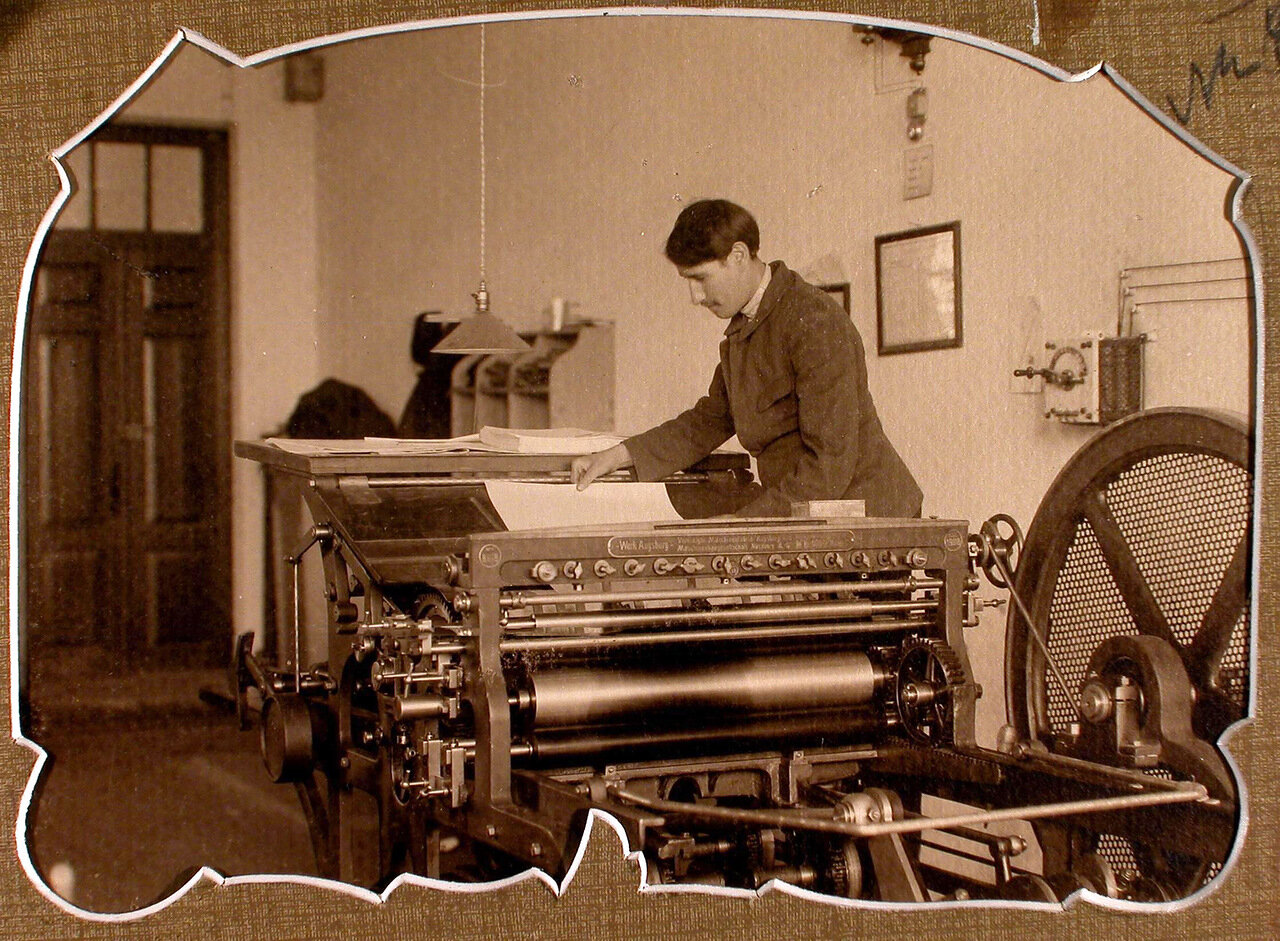 Найдите на веб-сайте Библиотеки Конгресса слово «печатный станок», чтобы увидеть фотографии различных типографий, пресс-центров и типографий разных десятилетий.
