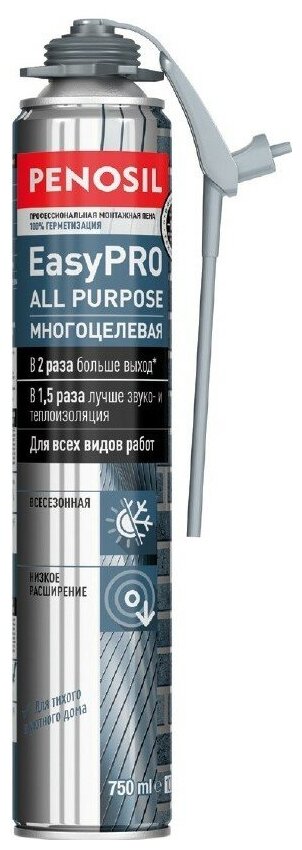 Выход монтажной пены PENOSIL GOLD GUN 65 литров. Температура использования +5 до +30С.