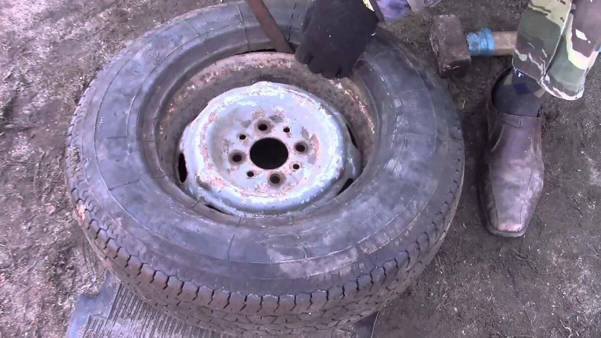 Главная сложность работы заключается в том, что для отделения покрышки от диска даже веса человека недостаточно. На это влияет также снижение эластичности резины со временем. Водители иногда используют наезд автомобилем на дефектное колесо, когда другой возможности ремонта нет.