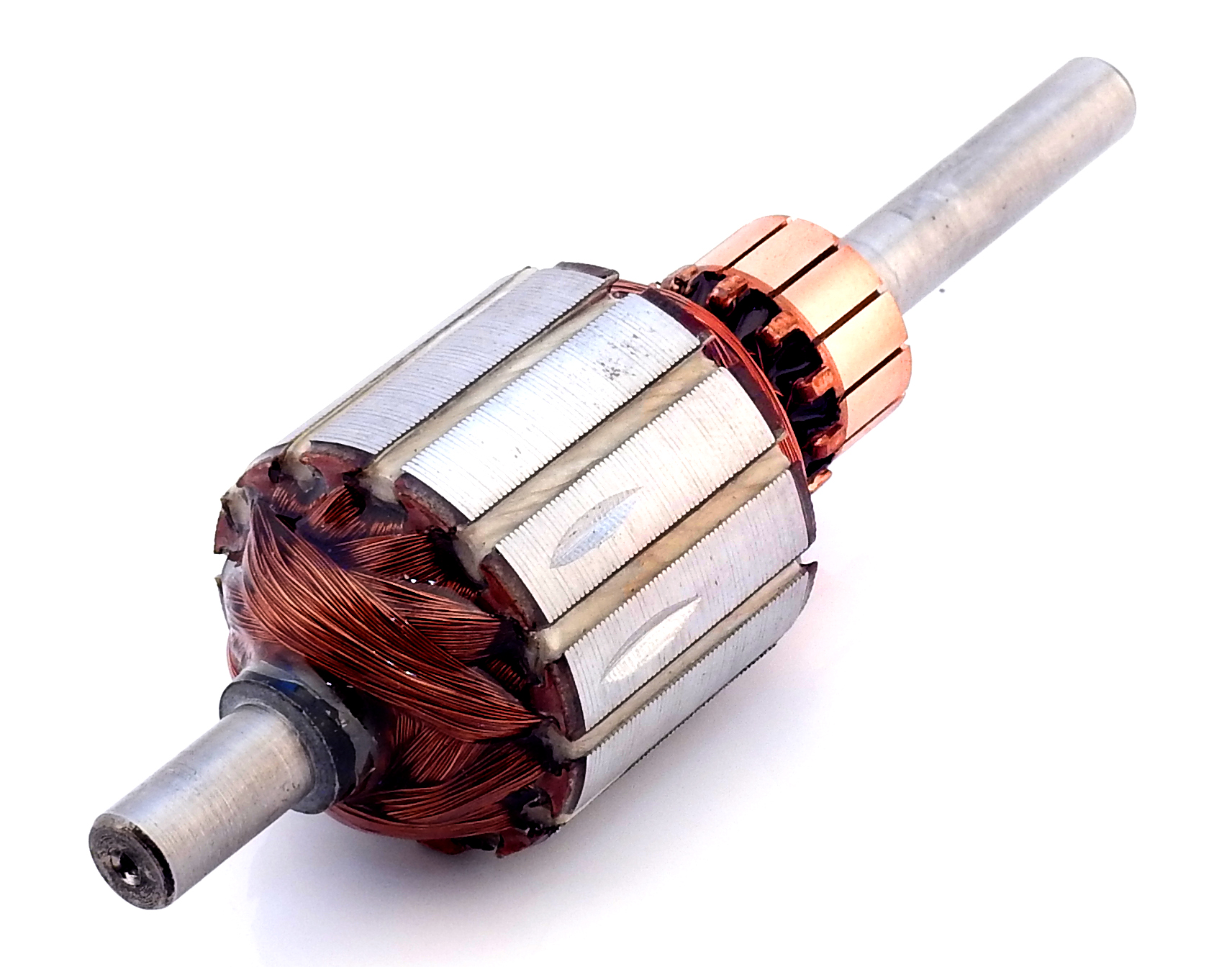 Одним из основных и необходимых элементов двигателя является якорь. Это подвижная часть, выполненная из магнитной системы, которая состоит из листов, обмотки, помещённой в пазы, и коллектора.