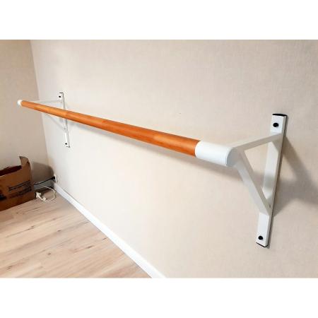 Еще одним преимуществом деревянного поручня является то, что дерево быстро перенимает температуру окружающей среды и такая перекладина будет более комфортна на ощупь для занимающегося.