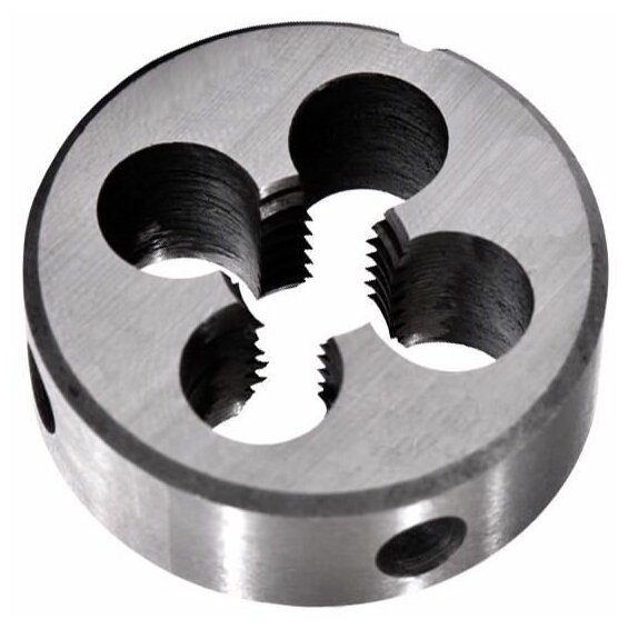 Наружный диаметр круглой плашки зависит от диаметра резьбы и стружечных отверстий. Чем больше диаметр стружечных отверстий, тем легче осуществляется удаление стружки. Но, соответственно, необходим и больший расход материала, и более высокие размеры комплектующих – воротков, патронов и т. д.