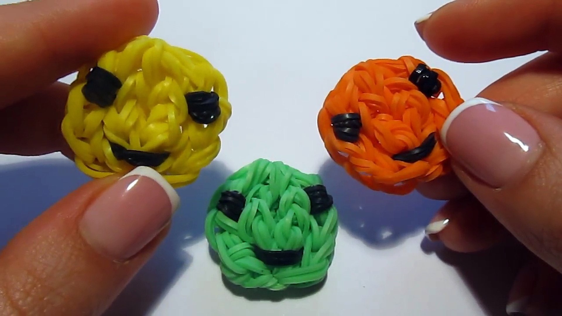 - Для этой работы вам понадобится материал двух цветов: зеленого и оранжевого. Лиственный хвост тыквы будет из зеленого цвета, поэтому не нужно выделять для работы слишком много этих резинок. А вот оранжевого материала понадобится больше.