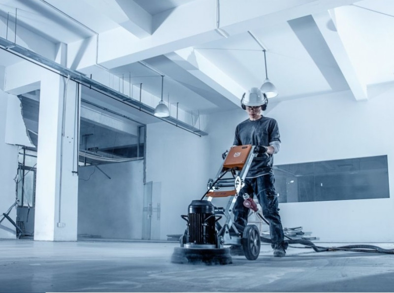 Шлифовка бетона помогает устранить незначительные дефекты и эффективно очистить покрытие