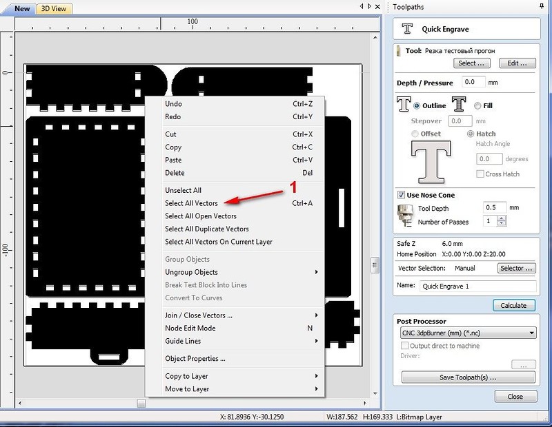 Он экспортирует векторные файлы в форматах DXF, DWG, DWF и PDF, которые поддерживают многие программы управления лазером.