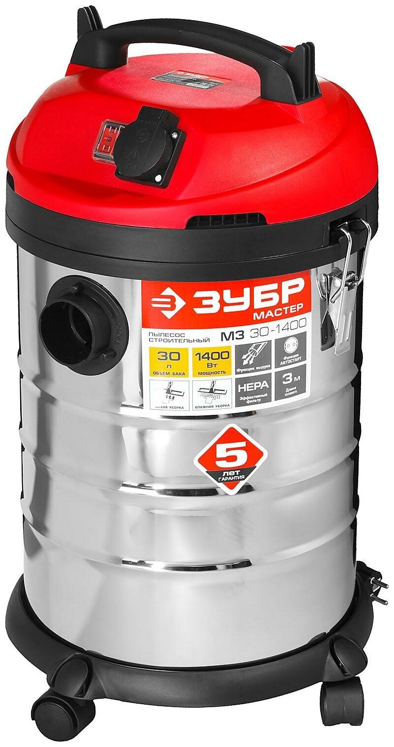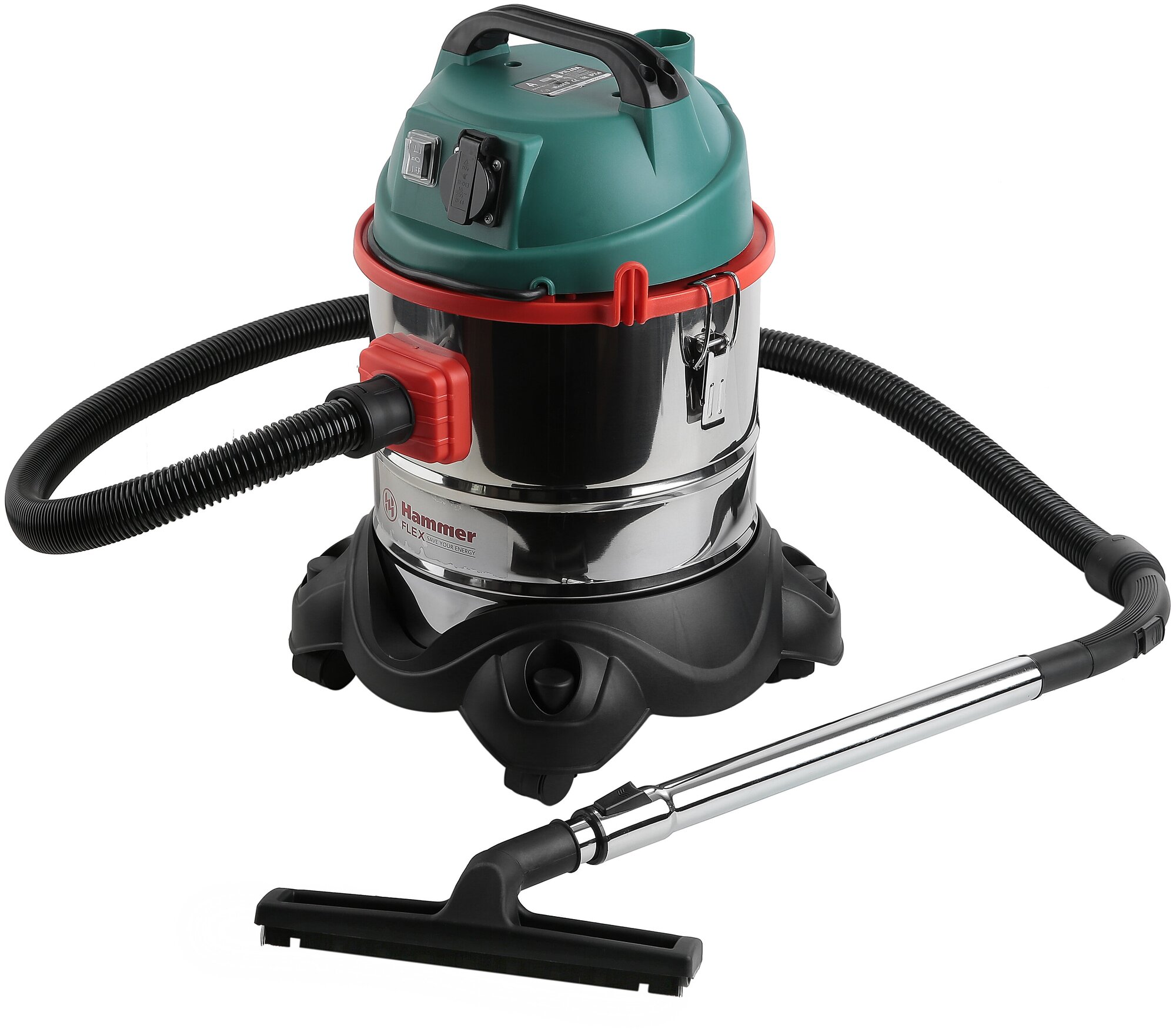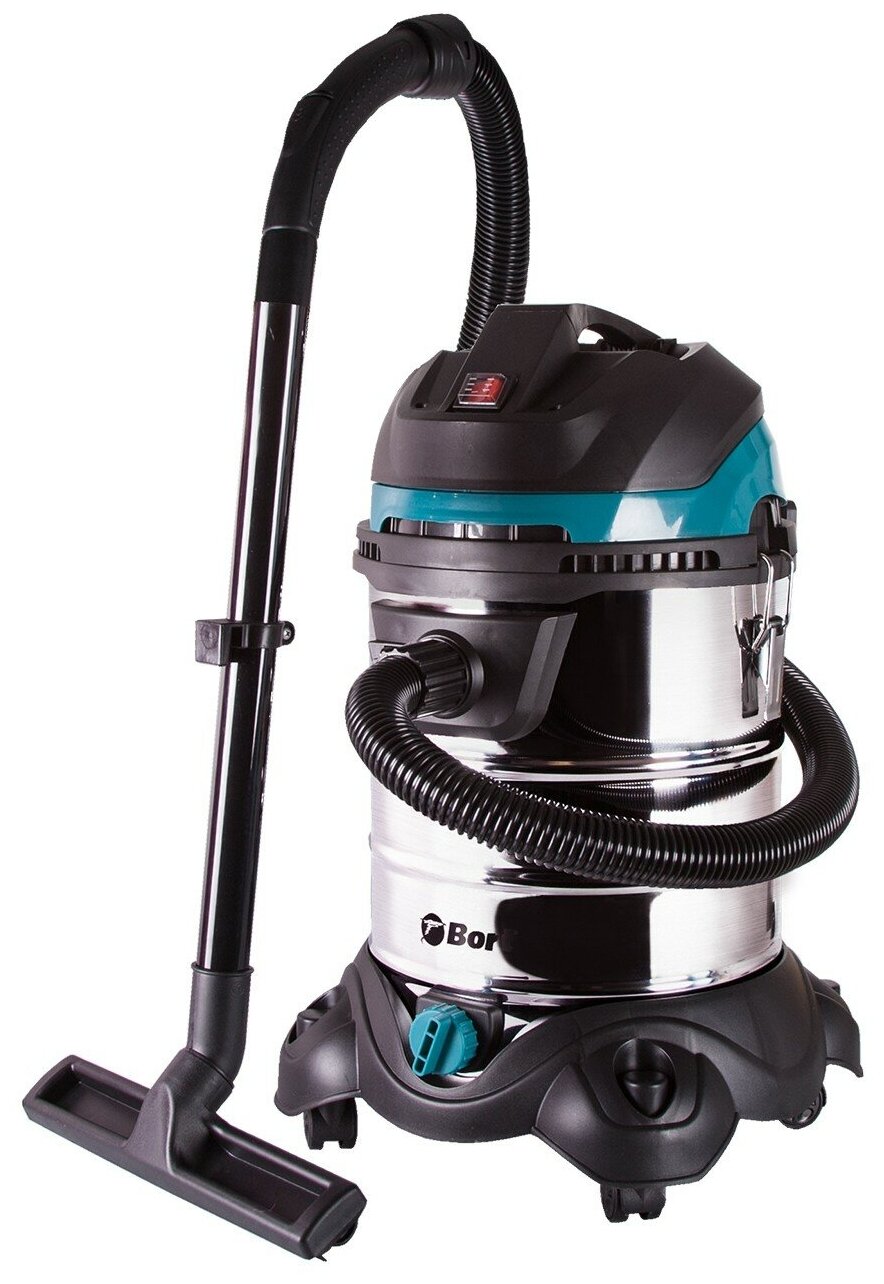 Профессиональный пылесос 1000 Вт для сухой чистки, с возможностью засасывания мокрого мусора и воды. Пылесборник: мешок/циклон 20 л. 3 насадки крепятся на корпусе. Металлический корпус. Колеса-ролики.