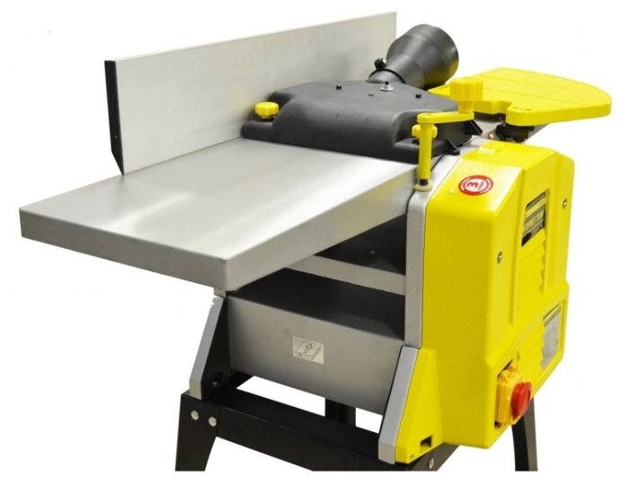 Рабочий вал с двумя ножами вращается со скоростью до 8000 об/мин, что делает обработку качественной. Подача заготовки в зону реза осуществляется автоматически. Скорость подачи регулировать нельзя, но производитель задал оптимальное значение – 6 м/мин. Модель имеет фиксированную ширину стола 330 мм, а вот длина может меняться от 260 до 665 мм, т.к. есть возможность устанавливать удлинители.
