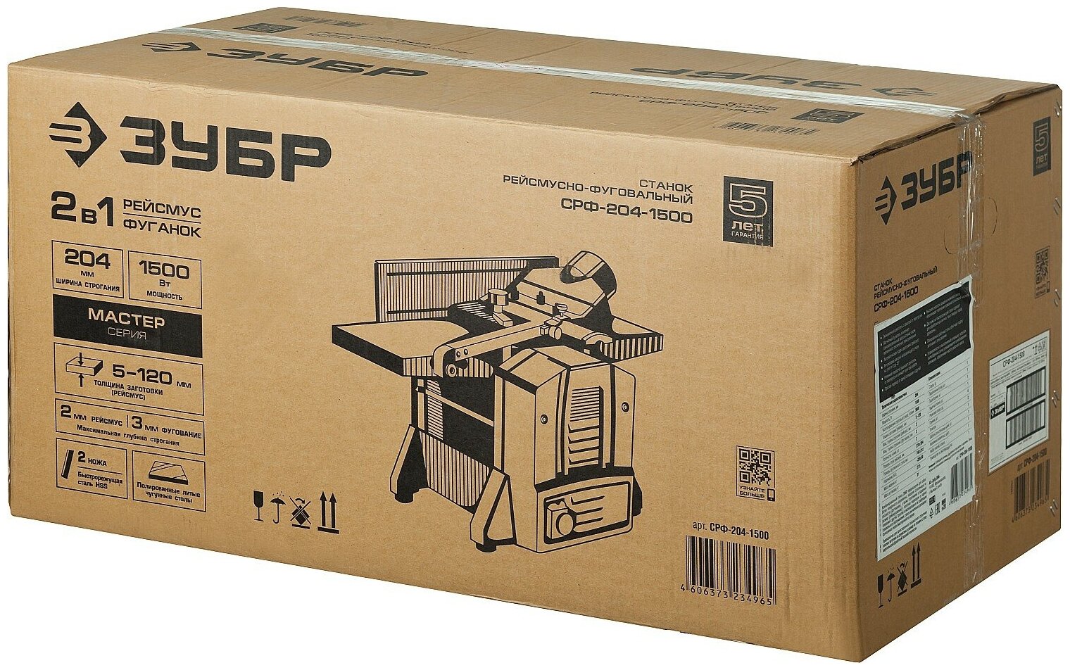 Вес станка – 230 кг, станина – чугунная. Это обеспечивает хорошую жесткость, то есть сопротивляемость упругим смещениям под действием нагрузки. Устойчивая система, гарантирует качественный результат работы. Операция строгания выполняется следующим образом: глубина обработки выставляется путем занижения высоты подающего стола относительно приемного, подача осуществляется вручную. На время работы пильный диск, сверлильный патрон и фрезы со станка рекомендуется снять. Рейсмусование производится на нижнем рабочем столе, заготовка продвигается к ножевому валу с помощью механизма автоподачи.