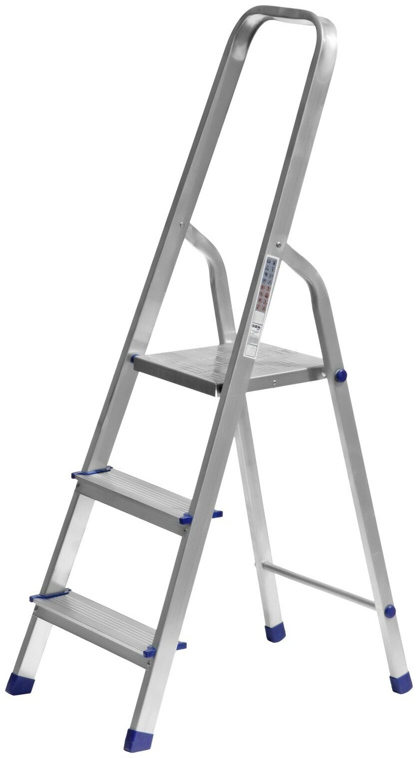 Для повышения устойчивости конструкции добавлены заглушки на опоры. Ступеньки оснащены специальным рифлением, предотвращающим скольжение ноги. Вес модели составляет 4 кг, поэтому ее довольно легко хранить и переставлять с места на место. Лестница поставляется в собранном виде и сразу же готова к работе.