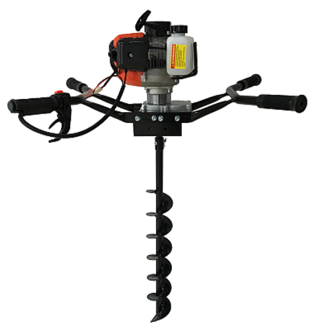 На легкие мотобуры для земляных работ устанавливают двухтактные бензиновые моторы с воздушным охлаждением объемом от 42 до 71 см³. Большой объем цилиндра создает высокий крутящий момент от показателей которого зависит с каким грунтом справится устройство: рыхлым песком, растительной почвой, торфом или плотной, вязкой и липнущей на спирали жирной глиной.