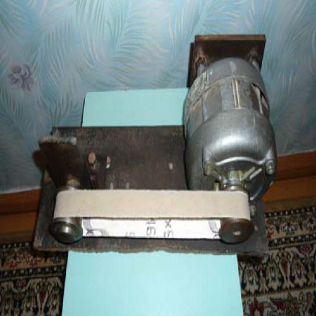 Самодельный шлифовальные станки могут быть оснащены двумя полирующими инструментами . Они размещаются на станине в последовательном порядке. В процессе работы ленты двигаются навстречу друг другу.