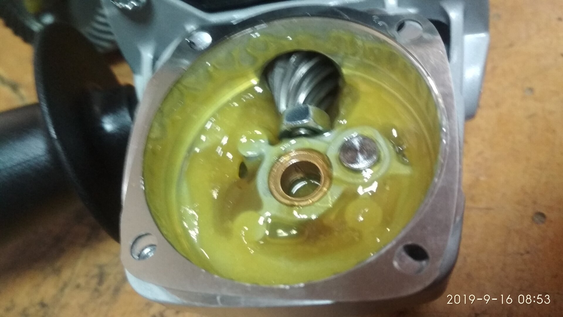 После вскрытия, внимательно осмотрите смазку в корпусе и крышке редуктора. Если она полупрозрачная, исходного желтоватого или сине-зеленого цветов (зависит от бренда), не имеет включений грязи и продуктов износа — смазку не стоит заменять. Достаточно пополнить её количество.