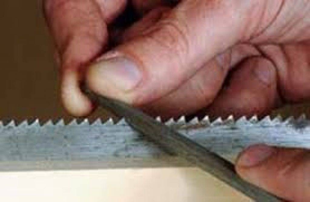 От зубьев ножовки зависит аккуратность и скорость реза. Чем мельче зуб, тем чище будет пропил, но времени на распиловку потребуется больше. Крупные зубья позволяют гораздо быстрее выполнять работы, но добиться при этом аккуратности очень сложно. Поэтому для пиления бревен, досок и крупных заготовок лучше выбрать ножовку с зубьями величиной в 6-8 мм, если же приходится иметь дело с мелкими деталями, ламинатом, отделочными материалами и элементами декора, следует остановить выбор на инструменте с величиной зуба до 3 мм. Также на аккуратность реза влияет заточка зубьев.