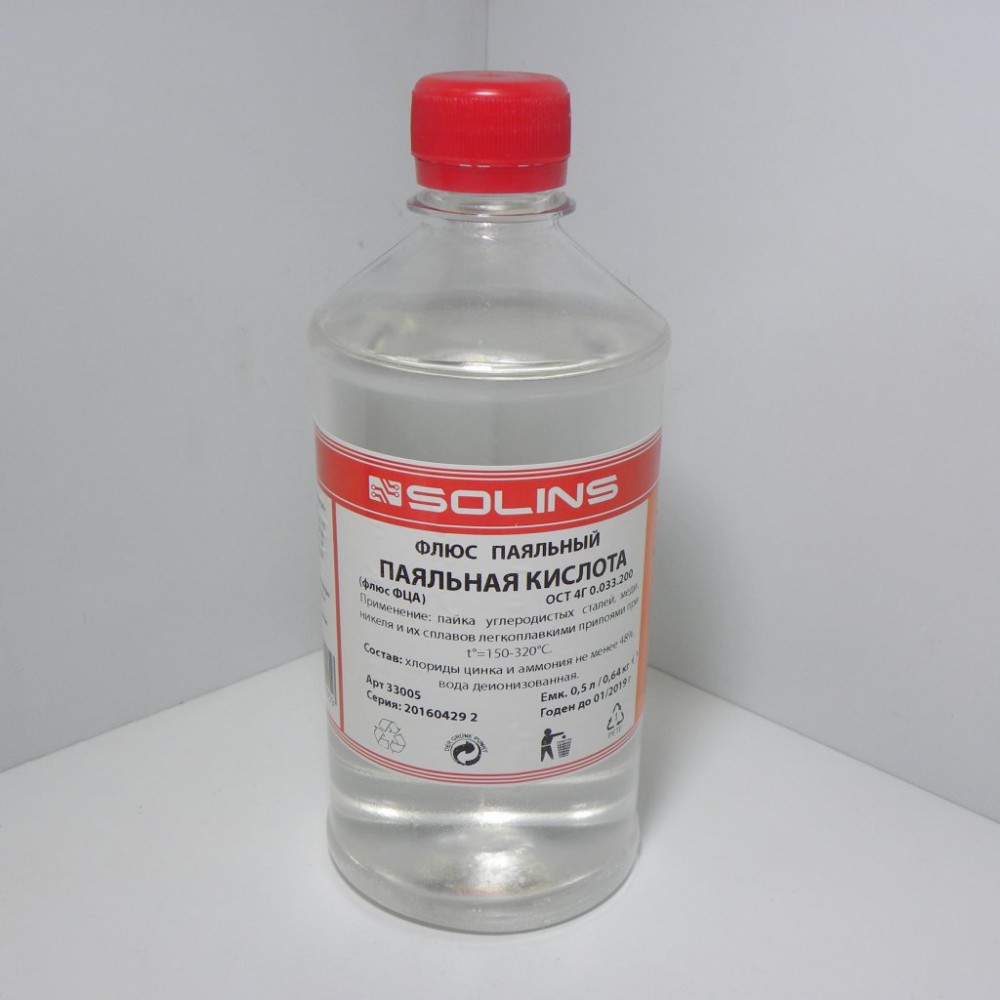 Флюс для пайки активный SOLINS «ПАЯЛЬНАЯ КИСЛОТА» – 500мл