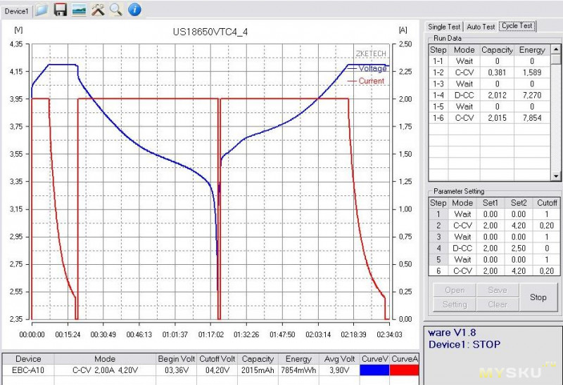 Murata/Sony VTC4 – обладает емкостью 2100mAh. Рабочее напряжение от 2,5 до 4,2 вольт. Макс. ток зарядки – 4А. Макс. долговременный ток разряда – 30А. Внутреннее сопротивление – 12mOm. Заявленный производителем ресурс – 500 циклов. В сравнении с VTC 3 имеют не только более высокую емкость, но и больший ресурс.