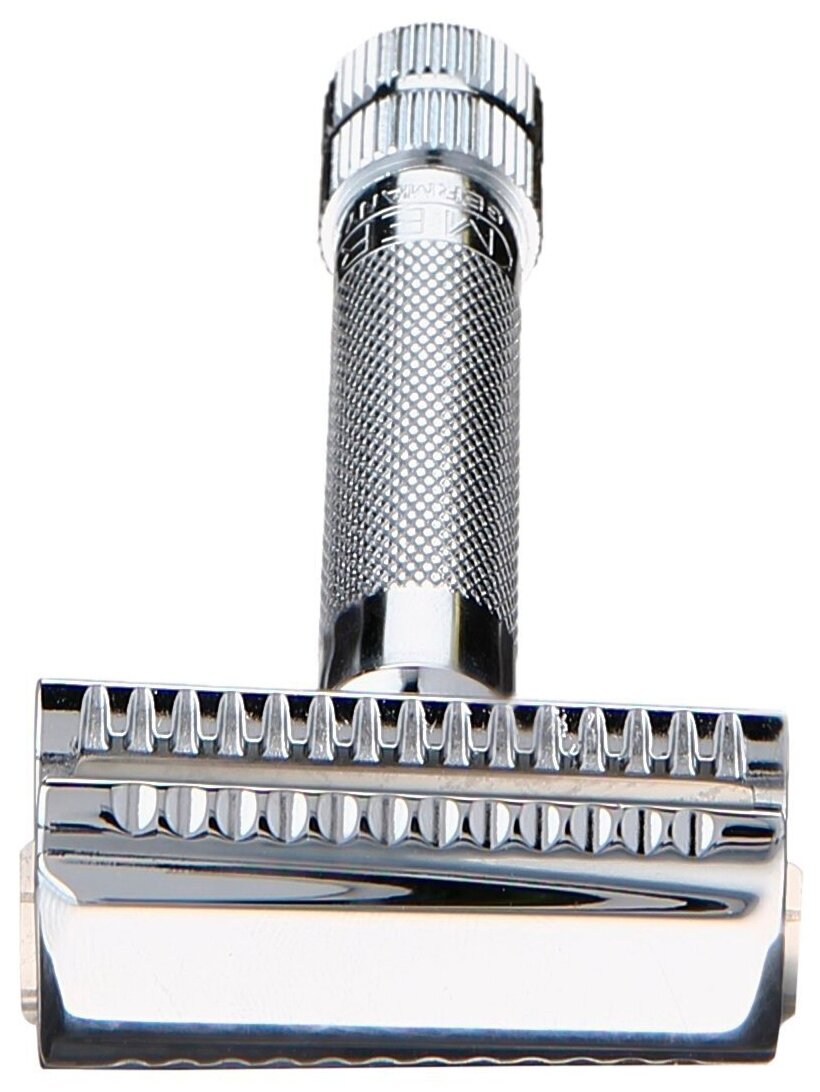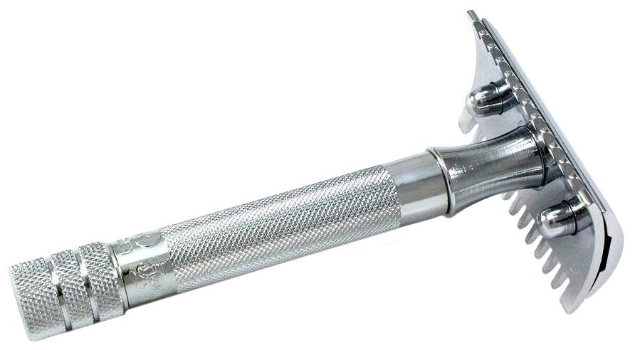 l Closed comb, которую еще называют Safe bar – это вид Т-образной бритвы, отличающийся прямым срезом и закрытой бритвенной головкой. Это один из самых популярных видов безопасной бритвы и значительно лидирует в продажах по сравнению со всеми остальными. Закрытая бритва также считается самой безопасной, ведь гребенка, которая контролирует выступ лезвия, предохраняет от нежелательных порезов и делает бритье комфортным для тех, у кого нет особых навыков в этом деле.