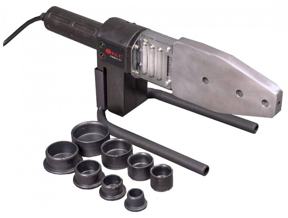 Прибор используется для сварки труб различного диаметра из большинства полимерных материалов. Он надежно соединяет конструкции без протечек в месте шва. Сварка выполняется в месте стыка и не требует применения дополнительных деталей. Насадки имеют антипригарное тефлоновое покрытие, обеспечивающее долгий срок службы. Аппарат оснащен индикатором подключения к сети и контроля температуры. Также предусмотрена подставка, на которую можно установить прибор при перерывах в работе. Есть удобный и вместительный металлический кейс.