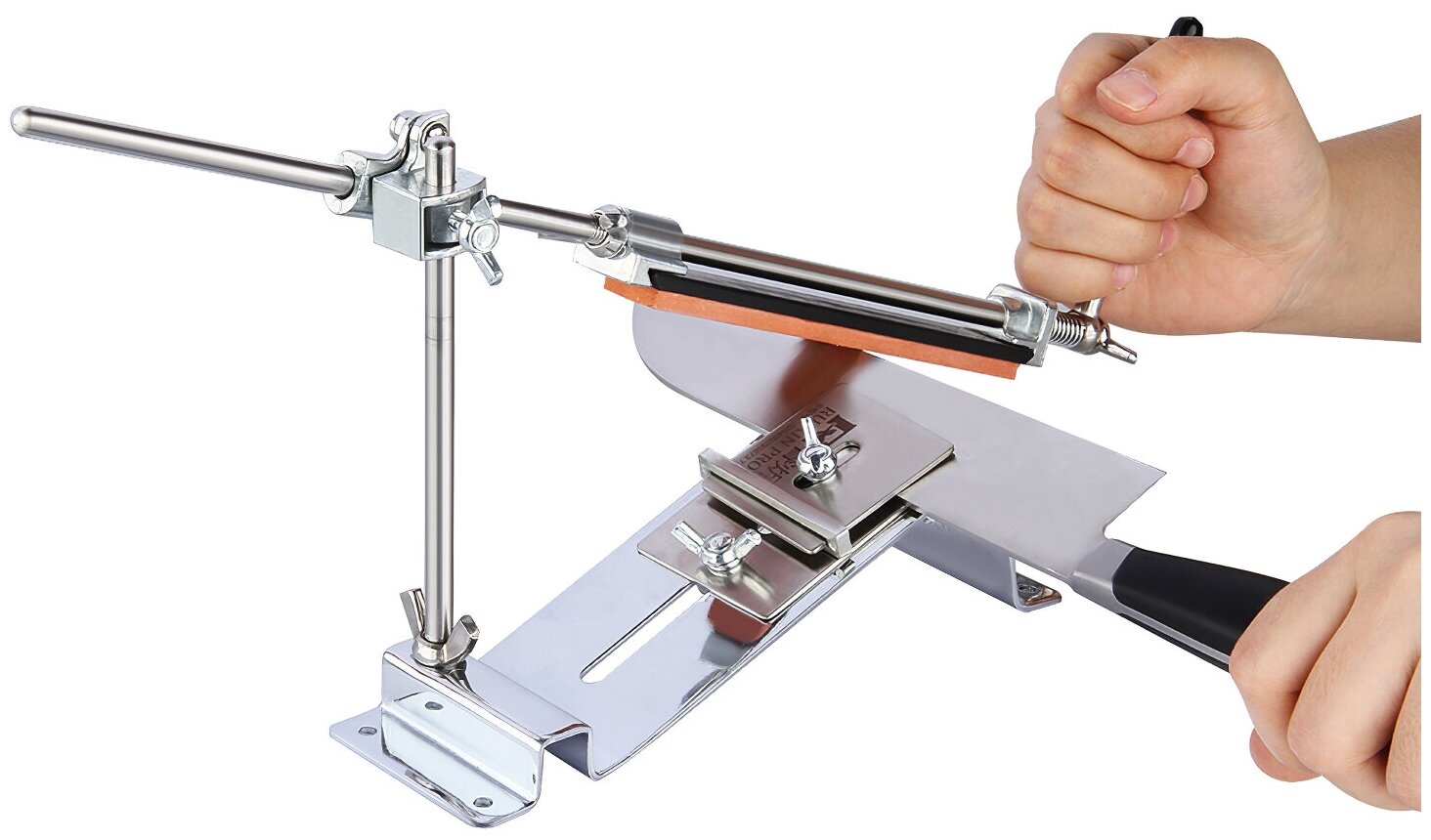 Таким образом обеспечивается неизменный угол наклона, что приводит к равномерной заточке лезвия.
