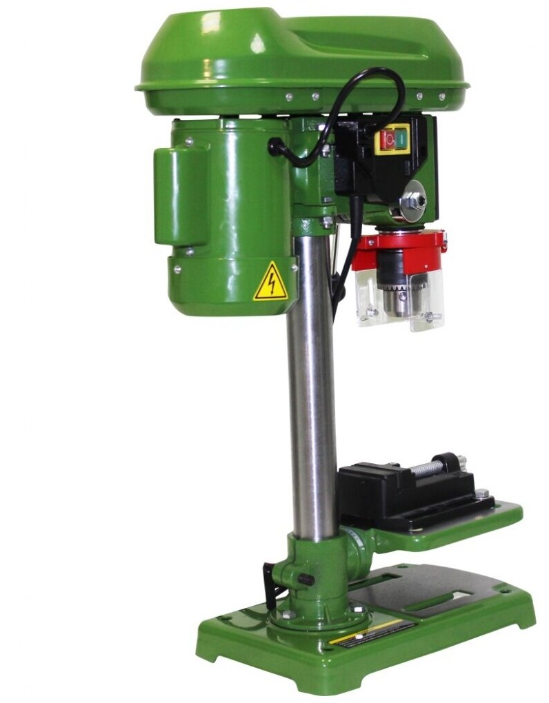 Станок полностью изготовлен из износостойкого металла, не включая щитка из пластика. Сверлильное оборудование отличается прекрасными техническими характеристиками.