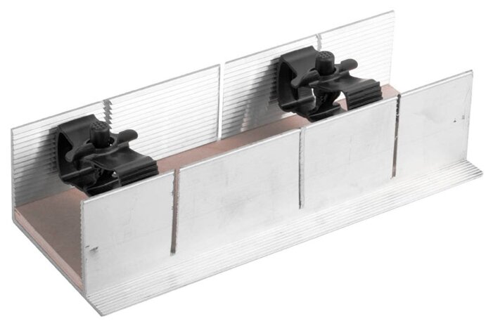 Угловая коробка снабжена резиновыми прокладками, которые предотвращают скольжение коробки во время работы. Но при желании его можно прикрепить к верстаку с помощью шурупов.