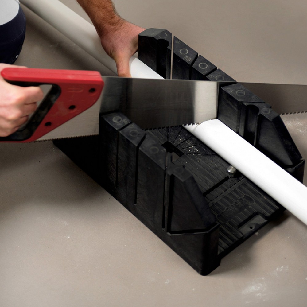 Чаще всего для резки под углом используется несложный плотницкий инструмент — стусло . Он представляет собой конструкцию из алюминиевого, пластикового или деревянного лотка с пазами, направляющими полотно ножовки под определенными углами к оси этого лотка.