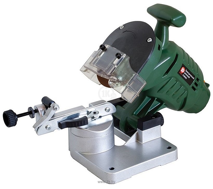 А благодаря литому основанию, такой станок устойчив во время работы. Также стоит отметить, что в конструкции станка предусмотрен пластиковый щиток, который защищает оператора от искр, вылетающих в процессе эксплуатации устройства. По отзывам владельцев, станок отлично справляется со своей задачей в быту. Его мощности в 100 Ватт вполне хватает для заточки бензопил время от времени. Так что он станет отличным приобретением для личного пользования.